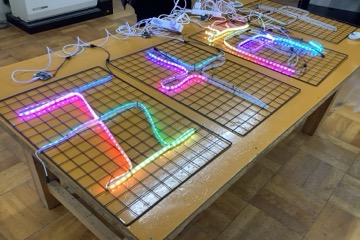 新潟大学の工学部今村教授にお越しいただきました。西区を明るく!をテーマに、参加者が思い思いの文字などをワイヤーネット上にLEDテープで表現していきました。
