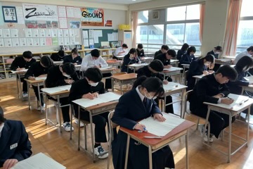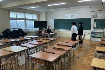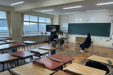 人権作文では、身近な出来事を通して人権について深く考えた作品が評価され、受賞者が紹介されました。また、英語検定では、見事に合格を果たした生徒たちの代表者が表彰されました。全校生徒からは、努力を積み重ねてきた生徒たちに、温かい拍手が送られました。生徒たちはそれぞれの決意を胸に、落ち着いた表情で新学期の第一日を迎えていました。 【面接練習】 進路に向けて、3年生は私立高校入試の面接練習に取り組んでいます。