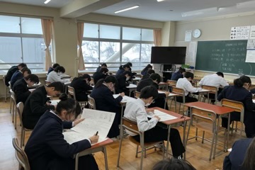 本日、後期期末テストが行われました。テスト1日目の今日は、各学年とも3教科のテストに臨み、生徒一人一人が真剣な表情で取り組んでいました。