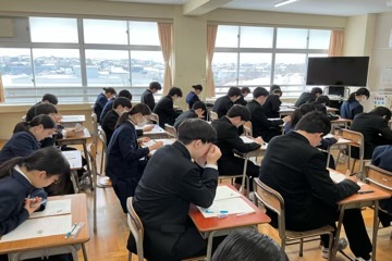 テストの結果はもちろん大切ですが、そこに至るまでの学習への取り組みや努力の過程も同じくらい重要です。定期テストを通して、計画を立てて学習することの必要性や、学習を振り返ることの大切さなど、多くのことを学んだことと思います。本日のテストを振り返り、うまくいった点や改善すべき点を整理し、明日のテストに生かしてほしいと思います。