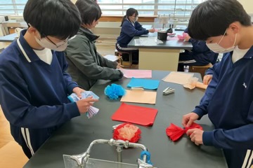 その後は、1・2年生だけで「3年生ありがとうプロジェクト」の準備を行いました。折り紙やお花紙を使って壁面飾りや「ありがとうプレート」を制作するなど、各委員会が工夫を凝らしながら心を込めて取り組んでいました。