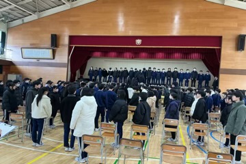 その後、座礼の練習をしたり、卒業記念合唱の隊形練習をしたりしました。すぐに動きを覚え、実行できるのはさすが3年生です。いよいよ登校日数も残り10日ほどとなり、卒業へ向け生徒たちも意識が高まってきたことと思います。