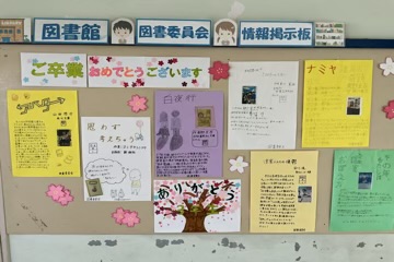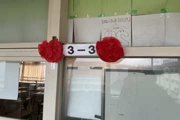 3年生の教室へと続く廊下、そして校舎のいたる所が、今、色鮮やかな飾りで彩られています。先生方や1・2年生たちが、これまで学校を引っ張ってくれた先輩たちへ感謝の気持ちを込めて、一つひとつ丁寧に作り上げたものです。