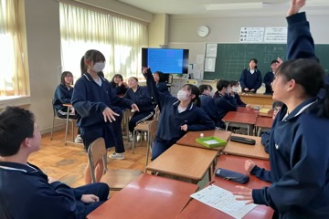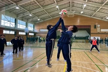 球技大会は「ドッヂボール」でした。しかしルールが面白く、内野でボールに当たった人は、応援に回るというシステムなのです。また、その応援で応援賞が決まるのだそうです。工夫を凝らし、全員が楽しめるようによく考えられた大会でした。学年委員の素晴らしさが光る内容に、学年が大いに盛り上がりました。