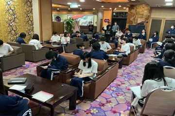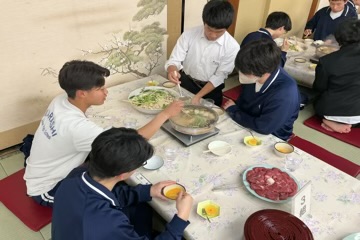 ホテルに到着後は、班ごとに研修のまとめを行いました。2日目の夕食も豪華なメニューに会話が弾み、現在は入浴を済ませて明日に備えています。