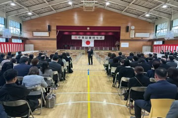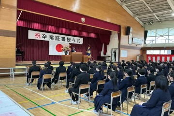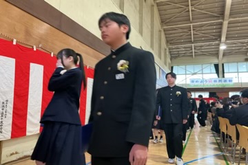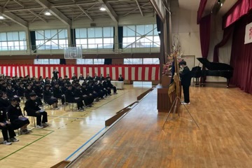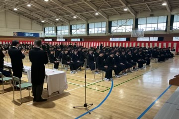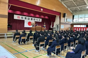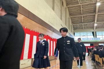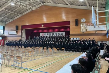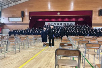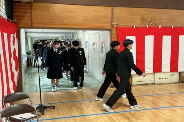 凛とした表情で入場した卒業生。国歌・校歌斉唱に続き、一人ひとりに手渡された卒業証書には、三か年の努力と成長が凝縮されていました。 校長式辞、そしてPTA会長・漆原様からの温かな祝辞をいただいた後、在校生による送辞、卒業生による答辞が行われました。