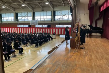 式のクライマックスを飾ったのは、卒業合唱『次の空へ』。 ステージに並んだ卒業生たちが、先生方や保護者の皆様への感謝、そして未来への決意を込めて響かせた歌声。別れを惜しみながらも、中学校生活をやり遂げたという充実感に満ちたその表情は、最高学年としてふさわしい、大変立派なものでした。