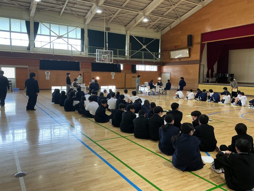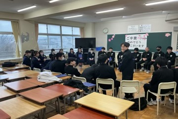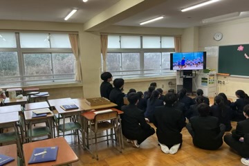 式典後、保護者の皆様にはPTA解散式にて、会長・校長・学年主任より感謝の言葉を述べさせていただきました。 その頃、教室では「最後の学活」が行われていました。3年間の思い出をスライドショーで振り返り、一人ひとりがクラスの仲間に向けて感謝の言葉を伝える姿。笑いと涙が交錯する、かけがえのない「旧友との別れ」の時間となりました。