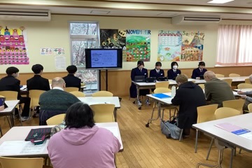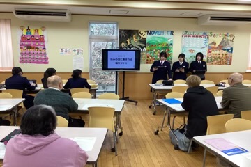 本日放課後、延期となっていた「第3回 ほのぼのカフェ」がついに開催されました。1月から準備を進めてきた2年生のリーダーたちが、4つのグループに分かれ、自分たちが企画した「地域連携活動」を学校運営協議会(CS)委員の皆様へプレゼンテーションしました。