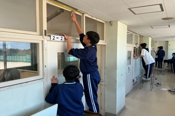 クラスの掲示物を丁寧に剥がし、ロッカーの奥、欄間や窓ガラス、さらには机と椅子の足にたまった埃など、普段の掃除ではなかなか手の届かない場所まで一生懸命に作業していました。