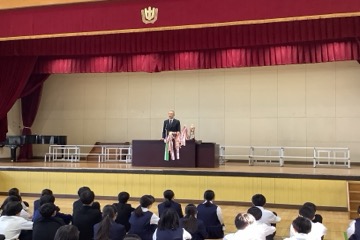 同じく5時間目、1年生では食育講演会がありました。朝食や水の大切さ、ジュースに含まれる砂糖の量や、主菜と副菜とご飯の割合を1:2:3の割合で摂ることの重要性などについて学びました。特に、ランチボックスはバランスに優れ、牛乳も合わせていただくことが大切だということを学びました。