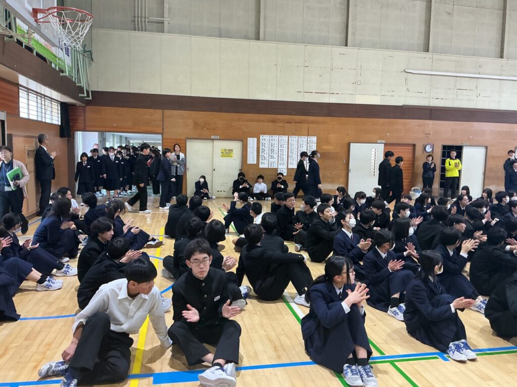 昨日は、二・三年生が入学したばかりの二百八名のニューフェイスを体育館にて拍手で迎え、毎年恒例の生徒会入会式を行いました。これにて、今年度の生徒会組織が整い、本格的に生徒会活動が開始されることになります。 入会式では、生徒会活動や学校行事などの紹介がありました。これからの始まる中学校生活について新入生は、見通しを持つことができたのではないでしょうか。 最後は、新入生の代表が元気よく感謝の言葉を述べて終わりました。 入会式の準備や当日の運営に携わった生徒会役員の皆さん、ご苦労様でした。