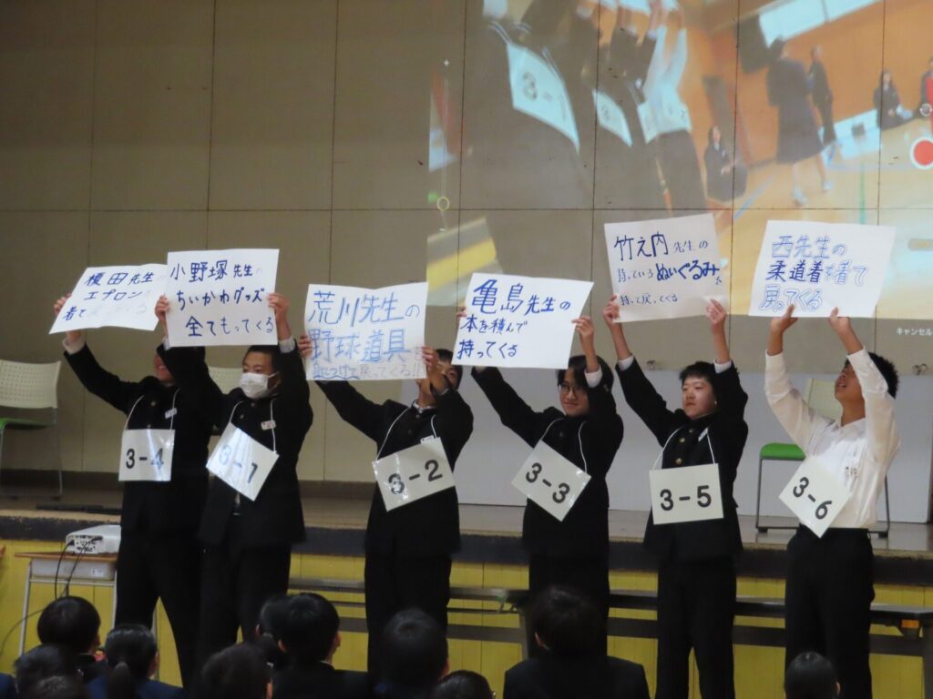 3年生は、借り物競争でくじ引きの順番を決めました。各クラスの軍団が決まるたびに、会場は盛り上がっていました。