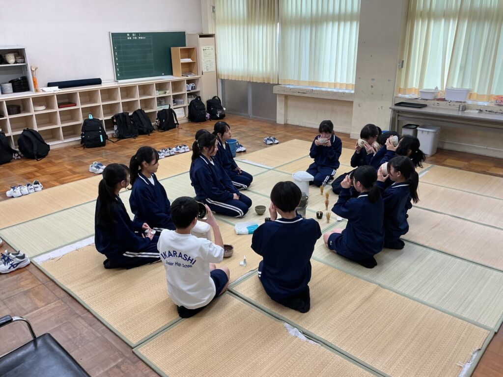 茶道部にお邪魔したところ、先輩がたててくれたお茶を美味しそうに飲んでいる1年生の姿を見ることができました。そして、箏曲部や卓球部では、先輩から技術的なことを教えてもらい、先輩と同じことをやろうとする一生懸命な姿を見ることができました。部活動を通して、これからも先輩と後輩の絆を深めてもらいたいですね。次号の学校だより「伊加良志」では、今回紹介できなかった部活動も含めて紹介する予定です。是非、学校だよりもご覧ください。