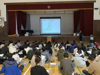 総合で防災について学習しています。今日は、新潟大学の高清水准教授をお招きして、津波について学習しました。津波は、「地震によって起こること」「日本は地震がたくさん起こるので、津波の被害も多いこと」「津 …