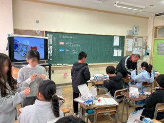 みそ汁作りに挑戦しました。具材は、ジャガイモ、ネギ、油揚げです。煮干しから丁寧に出汁をとりました。初めてみそ汁を作った児童も多かったようですが、手順を考え、協力して調理していました。家庭科室が、煮干 …