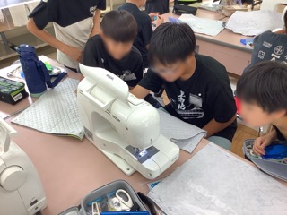 ミシンを使ってトートバックを作っています。しつけ縫いをして、曲がらないように慎重に縫っていました。素敵なトートバックの出来上がりが楽しみです。
