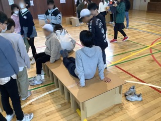 総合の防災学習の一環として、防災体験を行いました。ダンボールベットを組み立てて、寝転んだり、間仕切りテントを立てて、中に入ってみたりしました。また、発電機を実際に動かし、タブレットを充電したり、地震 …