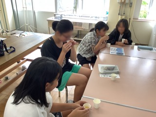 テレビでもお馴染みで、和食文化国民会議認定講師の鍵富茂先生をお招きして、和食についての出前授業をしていただきました。最初に日本の伝統的食文化である和食についての特徴を教えていただきました。出汁の体験学習では、昆布だけの出汁と鰹節を足した出汁を飲み比べました。鰹節を足した出汁を飲んだ子どもたちは、「美味しい!!」「昆布だけと全然違う!」とニコニコしながら、旨味を感じていました。鍵富先生からは「旨味は、言葉で表すのは難しいけれど、飲んだ後に口の中に残っているふぉんわりとした味、そして旨味は人を笑顔にします。」と教えていただきました。また「今は、洋食を好む人が増え、和食の文化が、日本の中から消えてしまいそうです。今日の授業をきっかけに和食の文化をしっかりと受け継ぎ、伝えていってほしいです。」というメッセージをいただきました。