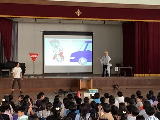 新潟西警察署、西区交通安全協会の皆様のご協力をいただき、上学年を対象とした交通安全教室を行いました。寸劇にクイズを交えながら、自転車に乗る際に守ってほしい「自転車安全利用五則」について教えていただきました。自転車安全利用五則とは、「①車道が原則、左側を通行 歩道は例外、歩行者を優先」「②交差点では信号と一時停止を守って、安全確認」「③夜間はライトを点灯」「④飲酒運転は禁止」「⑤ヘルメット着用」の5つです。子どもだけでなく、私たち大人も気をつけなければならない内容です。今日教えていただいた自転車安全利用五則をしっかりと守って、安全に自転車に乗ってほしいと思います。