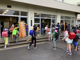 生活委員会が、全校のあいさつをよくしようと、あいさつ運動を行っています。生活委員が、毎朝、児童玄関の前に立ち、みんなとあいさつします。元気なあいさつをしている子どもを見つけ、昼の放送で名前を発表します。自分の名前を呼んでもらおうと、大きな声であいさつしている子が多くいます。これをきっかけに全校のあいさつがさらによくなっていくことを期待しています。