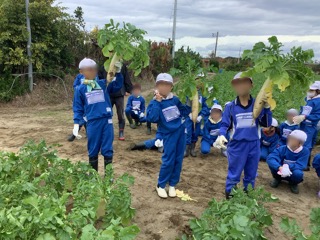 西区農政商工課主催で、大根の収穫に出かけました。西区の特色である砂丘地を生かした農業の大根づくりについて教えていただき、一人一本ずつ大根を抜いてきました。大きな大根に、子どもたちも大喜びでした。