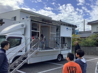 総合の防災学習の一環として、防災体験を行いました。ダンボールベットを組み立てて、寝転んだり、間仕切りテントを立てて、中に入ってみたりしました。また、発電機を実際に動かし、タブレットを充電したり、地震体験車で震度6強の揺れを体験したりしました。ダンボールベットの意外な丈夫さや震度6強の揺れの怖さを実感していました。