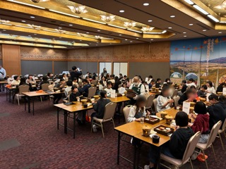 夕ご飯です。お昼ご飯をたっぷり食べたせいか、食のあまり進まない子もいたようですが、美味しくいただきました。