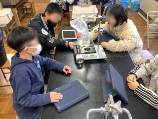 水には、「水(液体)」「氷(固体)」「水蒸気(気体)」の3つの姿があります。今日は、水を温めたときに出てくる泡は、本当に水蒸気なのかを調べました。泡をビニール袋に集めて、その後の変化を観察しました。この後は、水が氷に変化する様子も実験を通して学習していきます。