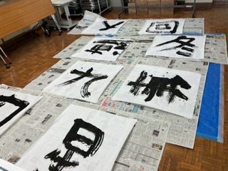 大習字に挑戦しました。大きな筆で、自分の描きたい字を書きます。筆が重くて、書くのは難しいのですが、力強く、迫力のある字を書き上げました。
