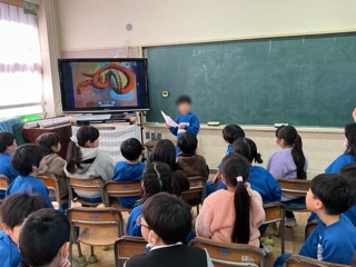 伝えたいことを選んで自分の宝物を紹介する学習をしています。「どんな物か」「どこが気に入っているか」「どんな思い出があるか」などを考えて、みんなに発表しました。「誕生日に買ってもらったから、大切にしています」「ぬいぐるみがかわいいので気に入っています」など、なぜ宝物なのかを詳しく発表していました。「大きさはどれくらいですか?」「どんなときに使っていますか?」など、上手に質問もしていました。