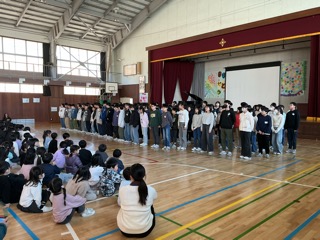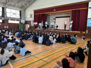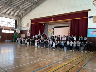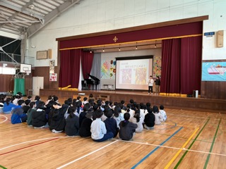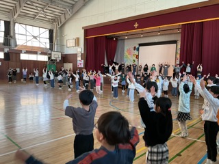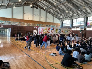 2、3時間目に6年生を送る会を行いました。前半はなかよし班ごとに各教室に分かれて、ゲームを楽しんだり、メッセージカードを渡したりしました。後半は体育館に全校が集まりました。1〜4年生は歌やダンスを披露しました。どの学年も楽しく、6年生への感謝の気持ちのこもった発表でした。5年生は、会の進行や準備をがんばりました。会の最後には、6年生が、在校生に向けてメッセージを送ってくれました。笑顔いっぱいの心あたたまる会になりました。