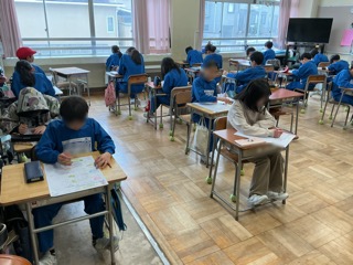今年度も残り10日を切りました。各クラスでは、学習のまとめをしています。今日は、たくさんのクラスでテストをしていました。がんばれ!子どもたち!