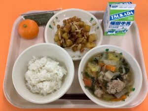12月8日(月)の給食 〜手作り肉団子と白菜のスープ〜