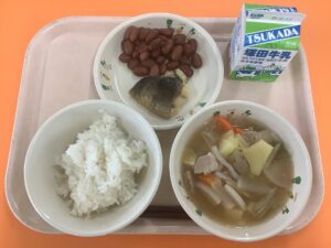 ・ごはん ・豚汁 ・ホッケの塩焼き ・金時豆の甘煮 ・牛乳