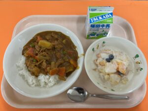 ・ごはん ・ポークカレー ・黒豆入りヨーグルトあえ ・牛乳