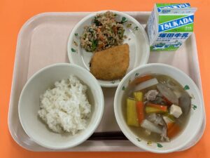 ・ごはん ・スキー汁 ・さけチーズフライ ・きりざい ・牛乳