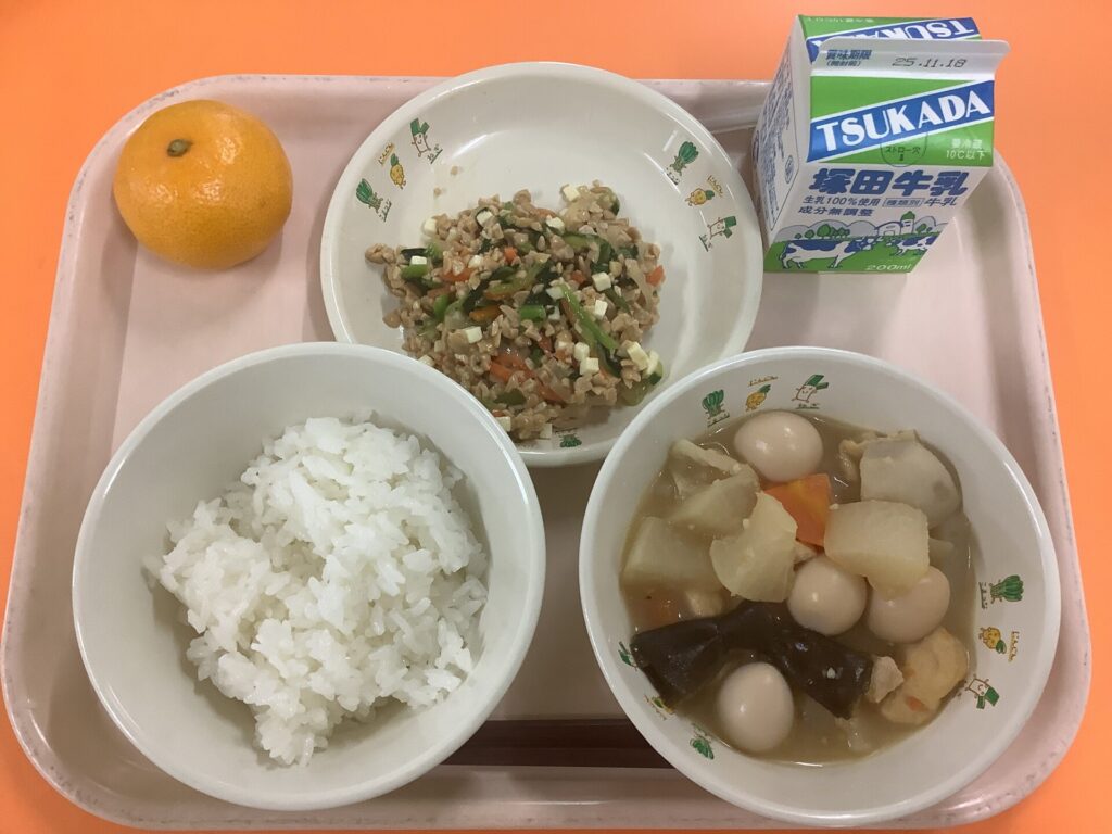 ・ごはん ・だいこんみそおでん ・チーズ入りきりざい ・みかん ・牛乳 お話給食2日目は「あきとふゆ はたけのごちそうなーんだ」です。 秋の畑には、栄養満点のおいしい野菜がいっぱいです。 …