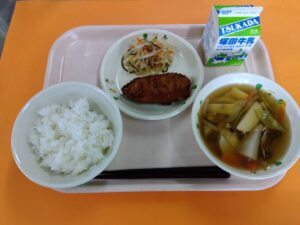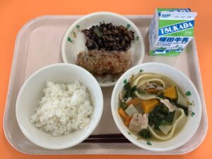 ・ごはん ・ほうとう ・ちくわのお好み揚げ ・ひじきの炒め煮 ・牛乳
