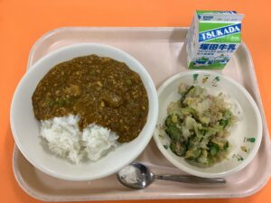 ・ごはん ・キーマカレー ・白菜のゆずドレッシングサラダ ・牛乳