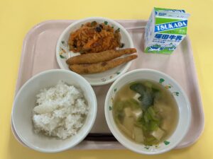 ・ご飯 ・新じゃがの味噌汁 ・ししゃもフライ ・切り干しナポリタン ・牛乳