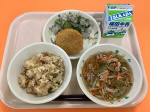 10月15日(火)の給食 〜手作りさつまいも蒸しパン〜