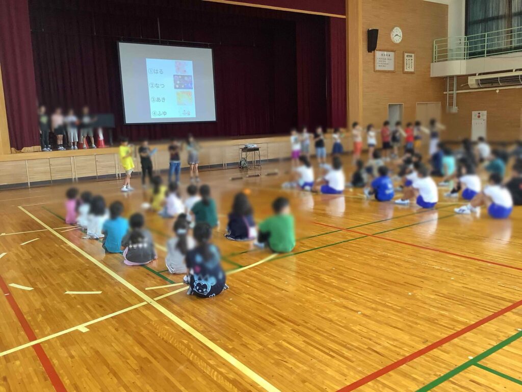 野菜を育てたことをもとに、野菜クイズを出題しました。問題は、思わず考えてしまう良問ばかり。メロディオンの演奏でシンキンキングタイムを演出。