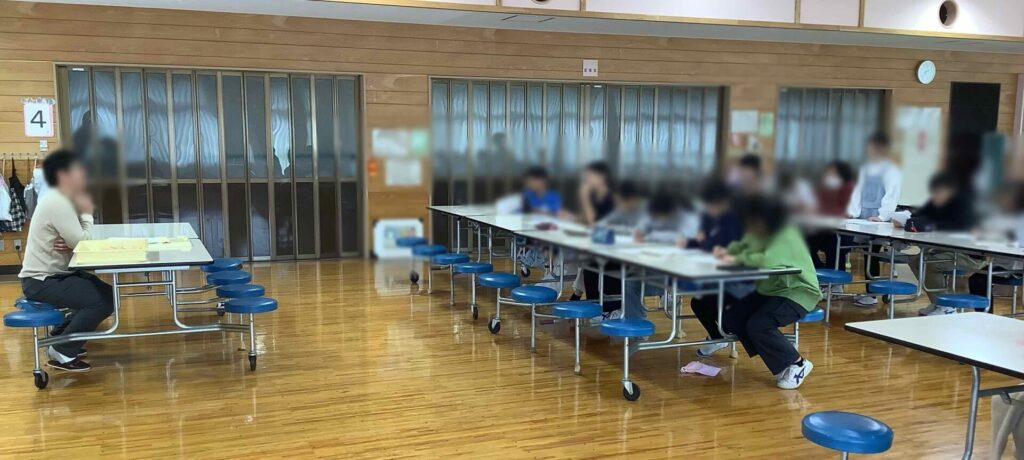その後、和菓子職人として活躍されている小冨士屋さんに、児童が質問をして、職業のことを考える学習を行いました。児童は真剣にメモを取りながら聞いていました。