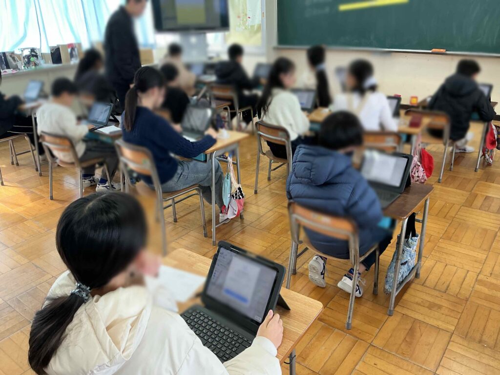 本日、その2代目の端末(セカンド端末)を児童に貸与しました。最初の設定を行う必要があり、5、6学年はやり方を確認しながら、自分たちの力で初期設定を行いました。