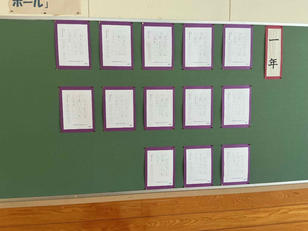 どの学年もそれぞれ精一杯書き上げた作品です。2月の参観日の際には、どうぞじっくりとご覧ください。