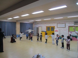 今日は、クリスマス会の日。保育室には、もしも、早めにこの近くにサンタさんが通るかもしれないので、プレゼントを入れる袋を置いておき、みんなはクリスマス会の会場の遊戯室へ・・・・。 キャンドルのと …