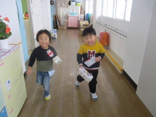 今日は少し春らしい日の光が差し込みました。今日もみんなはいっぱい楽しみました。 たくさん遊んだ後の給食・・・今日はデザートが! …