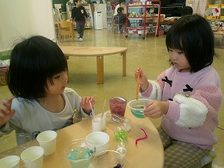 子供たちの遊びをよ~く見ていると、楽しいこと、場面、遊びの種類がまるで点でつながっているようです。遊びのはじまりやきっかけは様々で、ふと手にしたものから楽しいことがうまれたり、やりたい明確な目的があ …