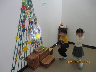 今日は雪がうっすらと積もりました。幼稚園の周りの畑も屋根も白くなりました。そんな中でしたが、今日は小学校の「あおぞらフェスティバル」に招待していただき、みんなで歩いて行ってきました。 行くとき …